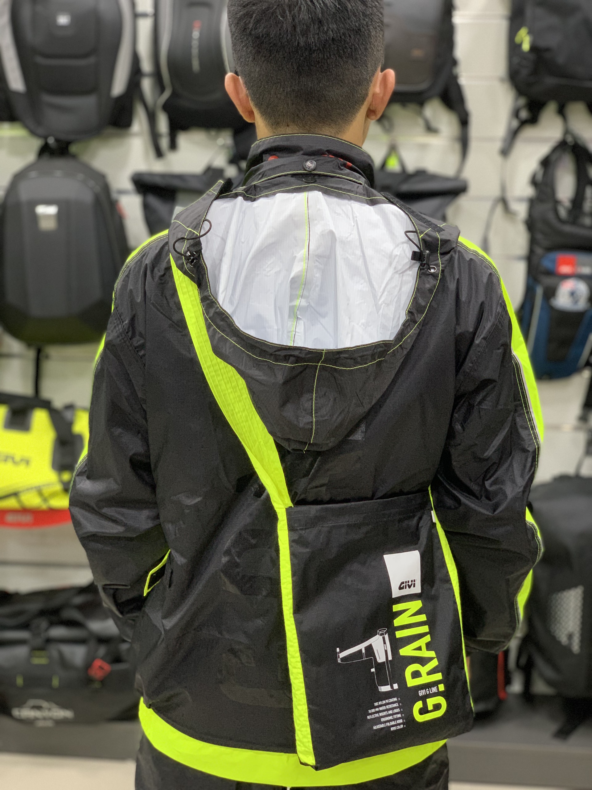 Áo mưa bộ xe máy GIVI GRA01 là dòng mới nhất, sở hữu chất liệu cũng như màu sắc đen - vàng nổi bật, gồm nhiều kích cỡ khác nhau dành cho cả nam và nữ.